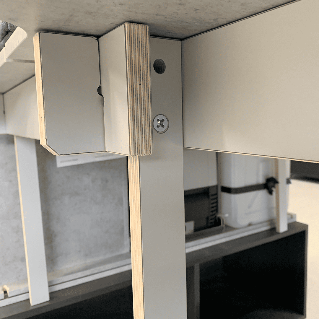 Die Unterkonstruktion lässt sich werkzeuglos montieren. Durch die flexible Konstruktion können Sie auch aus der Langen die kurze Unterkonstruktion erstellen.