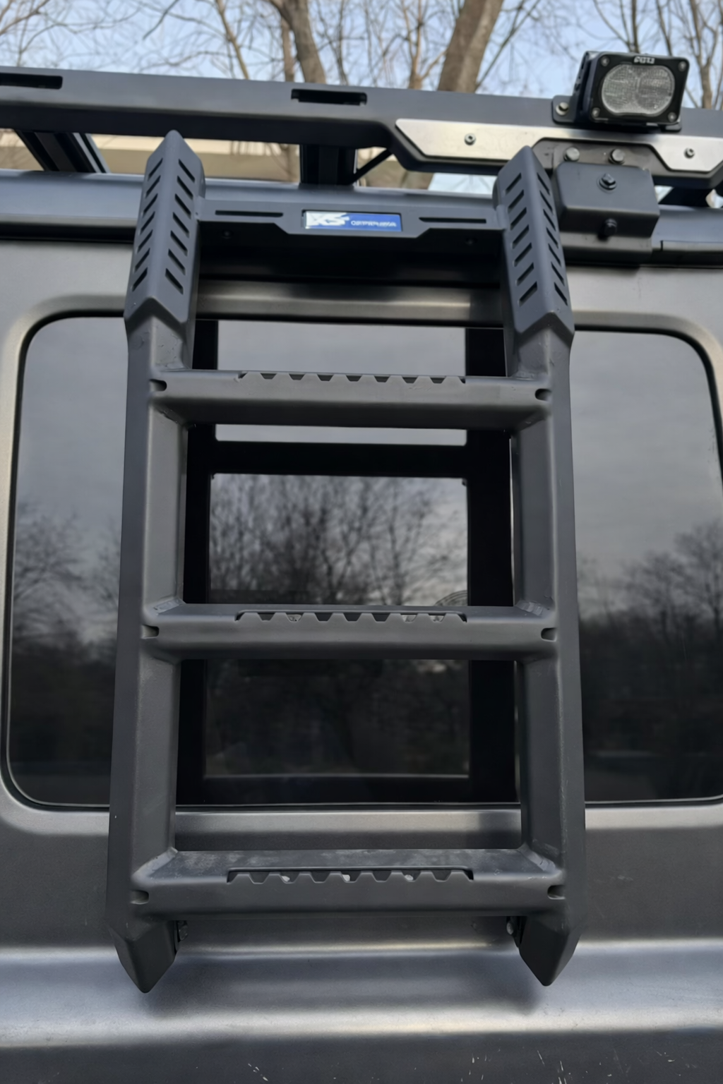 Breite, rutschfeste Trittstufen sorgen für festen Halt beim Auf- und Abstieg – ideal zum Be- und Entladen von Gepäck, Werkzeug, Kanistern oder Camping-Ausrüstung.