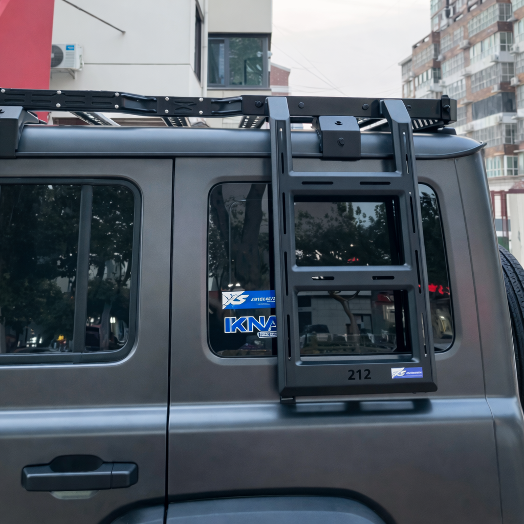 Die seitliche Leiter für den kurzen Dachgepäckträger des BAW 212 ermöglicht einen sicheren, komfortablen und schnellen Zugang zur Dachladung. Speziell für Fahrzeuge mit kurzem Dachgepäckträger entwickelt, überzeugt sie durch passgenaue Montage, robuste Offroad-Qualität und ein funktionales Design, das perfekt zum Charakter des BAW 212 passt.